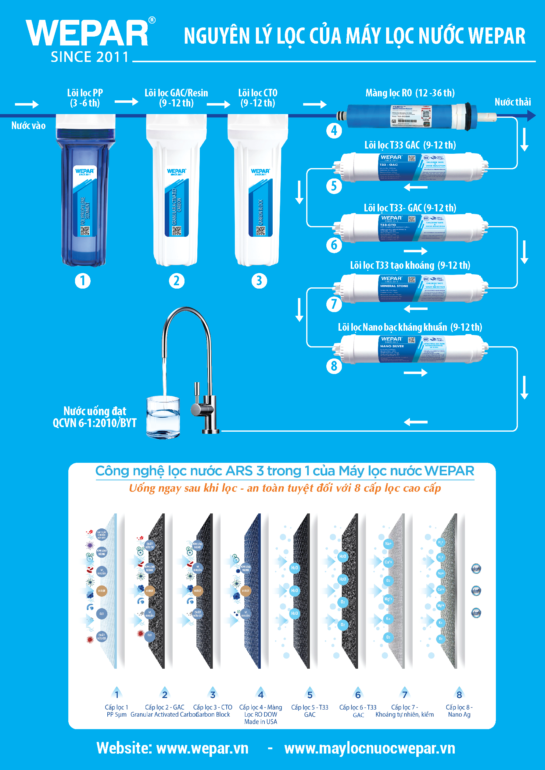 Công nghệ: Công nghệ ARS 3 in 1 – màng RO Dupont (Dow) USA